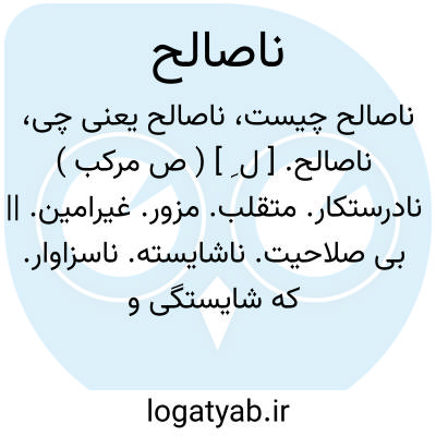 ناصالح. [ ل ِ ] ( ص مرکب ) نادرستکار. متقلب. مزور. غیرامین. || بی صلاحیت. ناشایسته. ناسزاوار. که شایستگی و صلاحیت ندارد. مقابل صالح. رجوع به صالح شود.