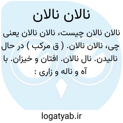 نالان نالان. ( ق مرکب ) در حال نالیدن. نال نالان. افتان و خیزان. با آه و ناله و زاری: این بیچارگک می آمد و می نالید تا نزدیک شهر رسیدم. همچنین مادرش نالان نالان می آمدو دلم بر وی [ آهو ] بسوخت. ( تاریخ بیهقی ص 200 ).