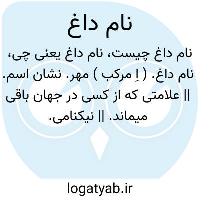 نام داغ. ( اِ مرکب ) مهر. نشان اسم. || علامتی که از کسی در جهان باقی میماند. || نیکنامی. آوازه. ( از ناظم الاطباء ).
