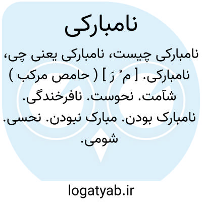 نامبارکی. [ م ُ رَ ] ( حامص مرکب ) شآمت. نحوست. نافرخندگی. نامبارک بودن. مبارک نبودن. نحسی. شومی.