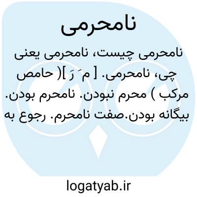 نامحرمی. [ م َ رَ ]( حامص مرکب ) محرم نبودن. نامحرم بودن. بیگانه بودن.صفت نامحرم. رجوع به نامحرم و نامحرمیت شود. || هتک. پرده دری. شوخ چشمی. بی حیائی: