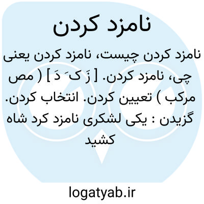(مصدر )۱ - نام بردن.۲ - تعیین کردن شخصی رابرای کاروشغلی:[که خدای خلاف نکندهنگامی که نامزدکندیاوعده ای که دهد ] ۳ - تعیین کردن کاروشغلی ومحل وماموریت برای کسی یا گروهی: یکی لشکری نامزد کردشاه کشید آن گهی تور لشکر براه. ۴ - درنظرگرفتن پسریادختربرای زناشویی با همسر آینده.