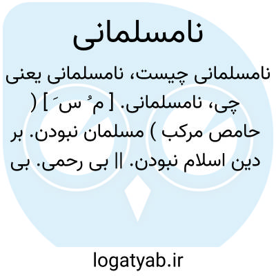 نامسلمانی. [ م ُ س َ ] ( حامص مرکب ) مسلمان نبودن. بر دین اسلام نبودن. || بی رحمی. بی انصافی. سنگدلی. قساوت. سخت دلی. رحم و مروت و انصاف نداشتن.