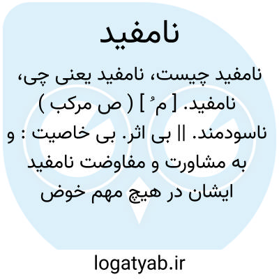 نامفید. [ م ُ ] ( ص مرکب ) ناسودمند. || بی اثر. بی خاصیت: و به مشاورت و مفاوضت نامفید ایشان در هیچ مهم خوض و شروع نپیوندد. ( سندبادنامه ص 245 ). و قلم بی شمشیر و علم بی عمل نامفید بود. ( سندبادنامه ص 4 ).