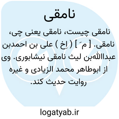 نامقی. [ م َ ] ( اِخ ) علی بن احمدبن عبداﷲبن لیث نامقی نیشابوری. وی از ابوطاهر محمد الزیادی و غیره روایت حدیث کند. سال وفاتش 480 است. ( از الانساب سمعانی ص 552 ).