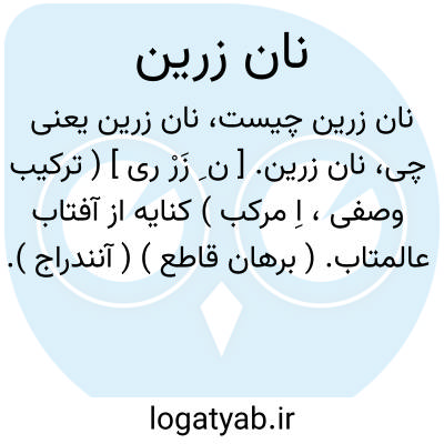 نان زرین. [ ن ِ زَرْ ری ] ( ترکیب وصفی، اِ مرکب ) کنایه از آفتاب عالمتاب. ( برهان قاطع ) ( آنندراج ). آفتاب. ( ناظم الاطباء ).