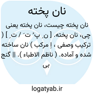 نان پخته. [ ن ِ پ ُ ت َ / ت ِ ] ( ترکیب وصفی، اِ مرکب ) نان ساخته شده و آماده. ( ناظم الاطباء ). || گنج بی رنج. غنیمت بارده. ( یادداشت مؤلف ):