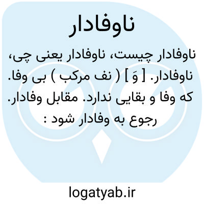 ناوفادار. [ وَ ] ( نف مرکب ) بی وفا. که وفا و بقایی ندارد. مقابل وفادار. رجوع به وفادار شود: