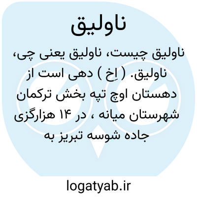 ناولیق. ( اِخ ) دهی است از دهستان اوچ تپه بخش ترکمان شهرستان میانه، در 14 هزارگزی جاده شوسه تبریز به میانه. در منطقه ای کوهستانی و معتدل هوا واقع است و 358 تن سکنه دارد. آبش از چشمه و محصولش غلات و حبوبات و شغل اهالی زراعت و گله داری است. راه مالرو دارد. ( از فرهنگ جغرافیایی ایران ج 4 ).