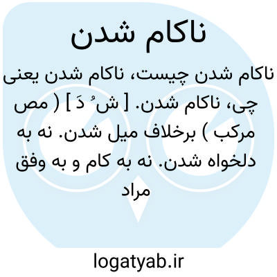 (مصدر ) ۱ - برخلاف خواست ومیل شخص شدن: چو ایران و نیران به ما رام شد همه کام بهرام ناکام شد. ۲ - کامیاب نشدن محروم ماندن: کس همچو من از زمانه ناکام نشد ناکام کسی چومن زایام نشد. ( رفیق اصفهانی )