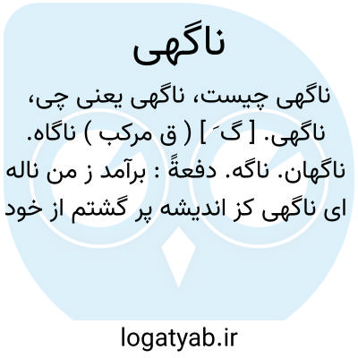 ناگاه ناگهان غفله: ناگهی باد صبا آید و این رونق و آب که تو می بینی ازین گلبن خوشبو برود. ( سعدی )