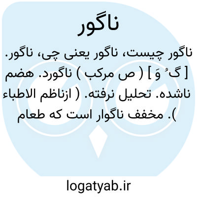 ناگور. [ گ ُ وَ ] ( ص مرکب ) ناگورد. هضم ناشده. تحلیل نرفته. ( ازناظم الاطباء ). مخفف ناگوار است که طعام ناپخته در معده باشد. ( آنندراج ) ( برهان قاطع ) ( هفت قلزم ). || غذای نامناسب. غذائی که زود هضم نشود و قابل هضم نباشد. ( ناظم الاطباء ). || ناگوار. ناگوارا. امتلاء. ( آنندراج ) ( برهان قاطع ) ( هفت قلزم ).