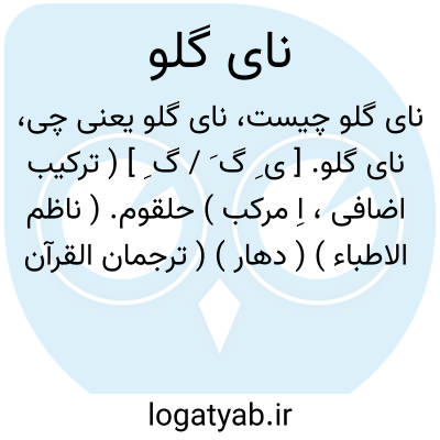 نای گلو. [ ی ِ گ َ / گ ِ ] ( ترکیب اضافی، اِ مرکب ) حلقوم. ( ناظم الاطباء ) ( دهار ) ( ترجمان القرآن ). حنجره.( ترجمان القرآن ). حنجر حلق. قصبةالمری: