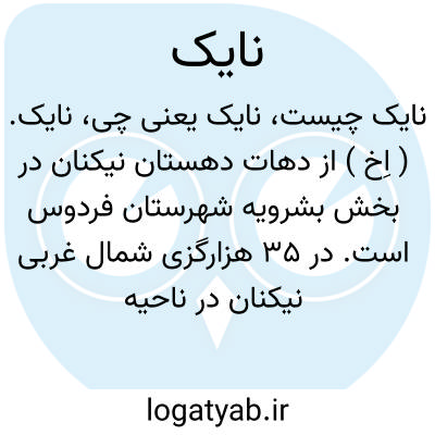 نایک. ( اِخ ) از دهات دهستان نیکنان در بخش بشرویه شهرستان فردوس است. در 35 هزارگزی شمال غربی نیکنان در ناحیه کوهستانی گرمسیری واقعاست و 44 تن سکنه دارد. آبش از قنات و محصولش غلات ومیوه ها و ابریشم است. مردمش به زراعت اشتغال دارند.راه مالرو دارد. ( از فرهنگ جغرافیائی ایران ج 9 ).