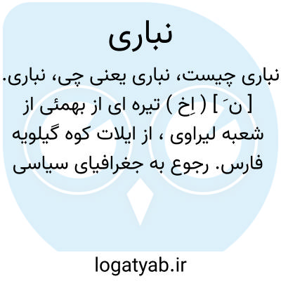 نباری. [ ن َ ] ( اِخ ) تیره ای از بهمئی از شعبه لیراوی، از ایلات کوه گیلویه فارس. رجوع به جغرافیای سیاسی کیهان ص 89 شود.