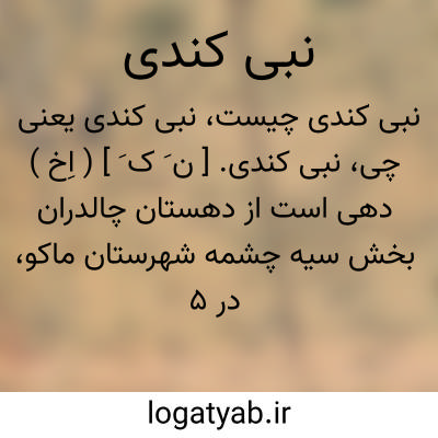 نبی کندی. [ ن َ ک َ ] ( اِخ ) دهی است از دهستان رحمت آباد بخش میاندوآب شهرستان مراغه، در 28 هزارگزی شمال غربی میاندوآب و 19 هزارگزی جاده شوسه میاندوآب به مهاباد، در جلگه معتدل هوائی واقع است و 72 تن سکنه دارد. آبش از سیمینه رودو چاه، محصولش غلات و چغندر و کشمش و شغل اهالی زراعت و گلیم بافی است. ( از فرهنگ جغرافیائی ایران ج 4 ).