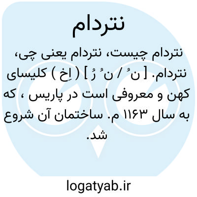 نتردام. [ ن ُ / ن ُ رُ ] ( اِخ ) کلیسای کهن و معروفی است در پاریس، که به سال 1163 م. ساختمان آن شروع شد.