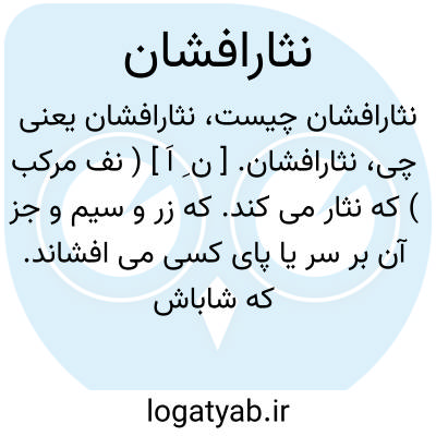 نثارافشان. [ ن ِ اَ ] ( نف مرکب ) که نثار می کند. که زر و سیم و جز آن بر سر یا پای کسی می افشاند. که شاباش کند. نثارافشاننده. نثارگر: