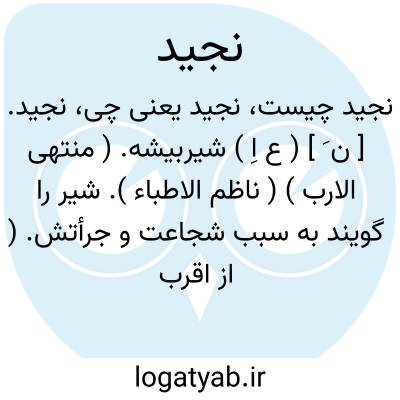 نجید. [ ن َ ] ( ع اِ ) شیربیشه. ( منتهی الارب ) ( ناظم الاطباء ). شیر را گویند به سبب شجاعت و جرأتش. ( از اقرب الموارد ). || ( ص ) دلیر درگذرنده در امور معضل. ( منتهی الارب ). شجاعی که در کارهائی داخل شود که دیگران عاجزند. ( از اقرب الموارد ). || وقاد. شجاع. نجد. صاحب نجدت. صاحب اقدام. ج، انجاد. ( یادداشت مؤلف ). || اندوه مند. رنجدیده. ( منتهی الارب ) ( ناظم الاطباء ). مکروب. مغموم. ( اقرب الموارد ). ج، نُجُد، نجداء.