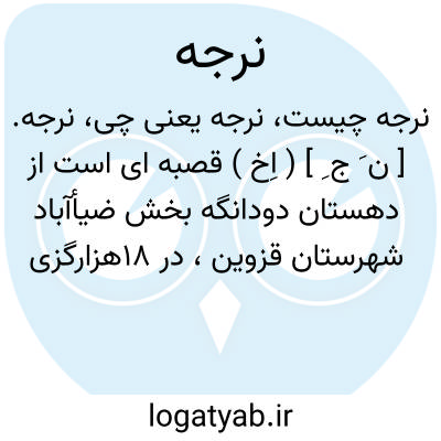 نرجه. [ ن َ ج ِ ] ( اِخ ) قصبه ای است از دهستان دودانگه بخش ضیأآباد شهرستان قزوین، در 18هزارگزی مشرق ضیأآباد در جلگه معتدل هوائی واقع است و 2339 تن سکنه دارد. آبش از رودخانه خررود، محصولش غلات و کشمش و بادام و گردو، شغل اهالی زراعت است. ( از فرهنگ جغرافیایی ایران ج 1 ).