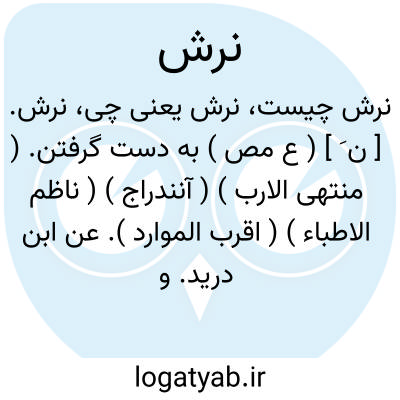 نرش. [ ن َ ] ( ع مص ) به دست گرفتن. ( منتهی الارب ) ( آنندراج ) ( ناظم الاطباء ) ( اقرب الموارد ). عن ابن درید. و عندی [ مجدالدین ] انه تصحیف اذ لیس فی کلامهم راء قبلها نون. ( از منتهی الارب ). ابن درید آورده و گوید درستش نمیدانم. ( از اقرب الموارد ). || ( اِ ) جای روییدن عرفط. ( ناظم الاطباء ). گفته اند که این کلمه تصحیف شده، به معنی اول فرش بود و به معنی دویم نَوْش. ( از ناظم الاطباء ).