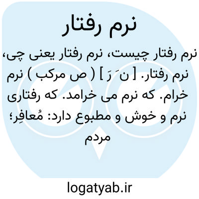 نرم رفتار. [ ن َ رَ ] ( ص مرکب ) نرم خرام. که نرم می خرامد. که رفتاری نرم و خوش و مطبوع دارد: مُعافِر؛ مردم نرم رفتار. ( منتهی الارب ). || که هموار رود. که هنگام رفتن به راکب خود تکانهای شدید ندهد: سَهْوة؛ شترماده رام نرم رفتار. ( منتهی الارب ).