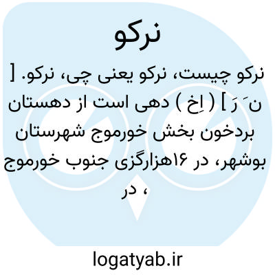 نرکو. [ ن َ رَ ] ( اِخ ) دهی است از دهستان بردخون بخش خورموج شهرستان بوشهر، در 16هزارگزی جنوب خورموج، در جنوب غربی کوه دلیر و بر ساحل دریا، در جلگه گرمسیری واقع است و 113تن سکنه دارد. آبش از چاه، محصولش غلات و خرما، شغل اهالی زراعت است. ( از فرهنگ جغرافیایی ایران ج 7 ).