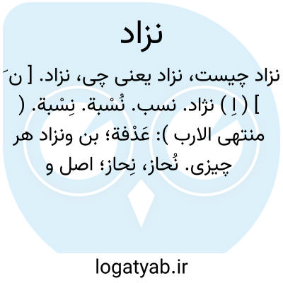 نزاد. [ ن َ ] ( اِ ) نژاد. نسب. نُسْبة. نِسْبة. ( منتهی الارب ): عَدْفة؛ بن ونزاد هر چیزی. نُحاز، نِحاز؛ اصل و نزاد. نصاب؛ نزاد و اصل هر چیزی. ( منتهی الارب ). رجوع به نژاد شود.