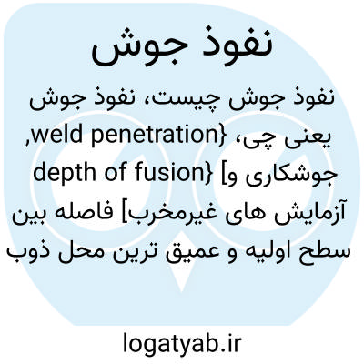 {weld penetration, depth of fusion} [جوشکاری و آزمایش های غیرمخرب] فاصله بین سطح اولیه و عمیق ترین محل ذوب فلز پایه