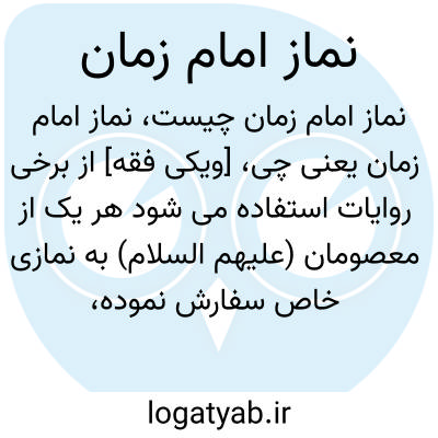 [ویکی شیعه] نماز امام زمان از نمازهای مستحبی شیعیان، دو رکعت است و آیه «إیاکَ نَعْبُدُ وَ إیاکَ نَسْتَعین» از سوره حمد در آن صد بار تکرار می شود. در آداب مسجد جمکران به خواندن این نماز توصیه شده است.