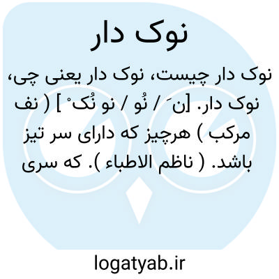 نوک دار. [ن َ / نُو / نو نُک ْ ] ( نف مرکب ) هرچیز که دارای سر تیز باشد. ( ناظم الاطباء ). که سری تیز و باریک دارد.