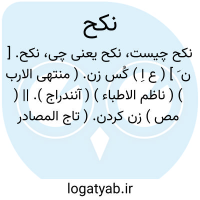 نکح. [ ن َ ] ( ع اِ ) کُس زن. ( منتهی الارب ) ( ناظم الاطباء ) ( آنندراج ). || ( مص ) زن کردن. ( تاج المصادر بیهقی ) ( از متن اللغة ). نکاح. رجوع به نکاح شود. || شوهر کردن. ( تاج المصادر بیهقی ) ( از متن اللغة ). رجوع به نکاح شود. || مجامعت کردن. ( تاج المصادر بیهقی ) ( از متن اللغة ). رجوع به نکاح شود. || غلبه کردن خواب بر چشم کسی. ( ازمنتهی الارب ) ( آنندراج ) ( از متن اللغة ). رجوع به نکاح شود. || رسیدن باران زمین را. ( از منتهی الارب ) ( آنندراج ) ( از متن اللغه ). رجوع به نکاح شود.