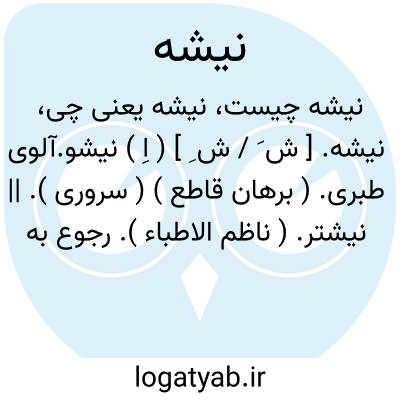نیشه. [ ش َ / ش ِ ] ( اِ ) نیشو.آلوی طبری. ( برهان قاطع ) ( سروری ). || نیشتر. ( ناظم الاطباء ). رجوع به نیشو شود. || نای نواختنی. ( ناظم الاطباء ). رجوع به ماده بعد شود.