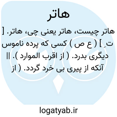 هاتر. [ ت ِ ] ( ع ص ) کسی که پرده ناموس دیگری بدرد. ( از اقرب الموارد ). || آنکه از پیری بی خرد گردد. ( از منتهی الارب ). ج، هاترون، و هَتَره. || هتر هاتر، مبالغه است. اوس بن حجر راست: «یراجع هِتراً من تماضر هاترا»؛ ای یعود الی ان یهذی بذکرها. ( از اقرب الموارد ).