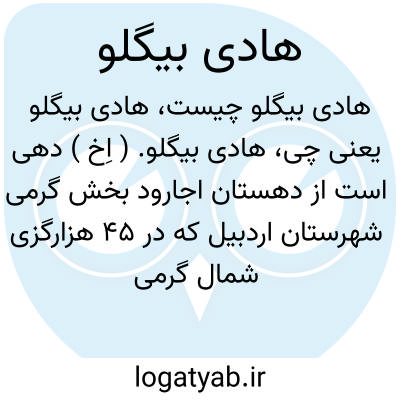 هادی بیگلو. ( اِخ ) دهی است از دهستان اجارود بخش گرمی شهرستان اردبیل که در 45 هزارگزی شمال گرمی و دو هزارگزی راه شوسه گرمی به شهرستان اردبیل واقع شده است. کوهستانی و گرمسیر است و از چشمه بالهاری مشروب میشود. محصولش غلات و حبوبات و دارای 101تن سکنه است که به زراعت و گله داری اشتغال دارند. راهش مالرو میباشد. ( از فرهنگ جغرافیایی ایران ج 4 ).