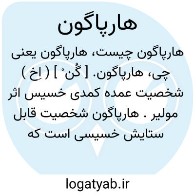 هارپاگون. [ گُن ْ ] ( اِخ ) شخصیت عمده کمدی خسیس اثر مولیر. هارپاگون شخصیت قابل ستایش خسیسی است که مولیر با آفریدن وی خست را به بهترین وجهی تجسم بخشیده است. لئامت و صرفه جویی وی از چیزهای جزئی، خشونتش برای برتری، و ترسش از اینکه مبادا فریبش بدهند و لختش کنند خنده آور است. از طرف دیگر شخص نفرت انگیز و تأثرآوری میباشد، زیرا که وظایف پدری و تمام مهر و محبت خانوادگی را قربانی خستش میکند. مولیر برای بهتر نشان دادن و برجسته کردن خودپرستی و سودجویی هارپاگون وی را عاشق میکند، اما این عشق پیرانه نمایشی از خست است و جز آن چیزی نیست.