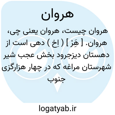 هروان. [ هَِرْ ] ( اِخ ) دهی است از دهستان ابرغان از بخش مرکزی شهرستان سراب که در 8 هزارگزی جنوب سراب و 8 هزارگزی راه شوسه تبریز به سراب واقع شده و جلگه ای است معتدل و دارای 315 تن سکنه از چشمه ها مشروب میشود و محصول عمده اش غله، بزرک و کار مردم زراعت و گله داری است. ( از فرهنگ جغرافیایی ایران ج 4 ).