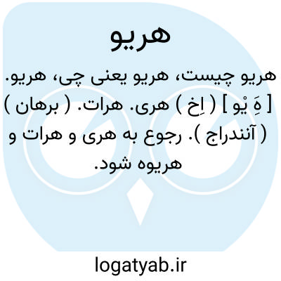 هریو. [ هَِ یْو ] ( اِخ ) هری. هرات. ( برهان ) ( آنندراج ). رجوع به هری و هرات و هریوه شود.