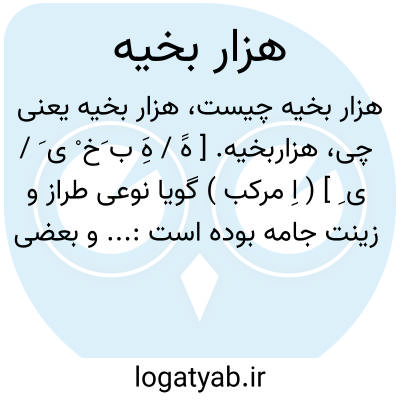 هزاربخیه. [ هََ / هَِ ب َخ ْ ی َ / ی ِ ] ( اِ مرکب ) گویا نوعی طراز و زینت جامه بوده است:... و بعضی منسوج به مقتضای وقت و روز مانند علم جامه و هزاربخیه و مدفون و شب اندرروز. ( دیوان البسه نظام قاری ص 138 ).