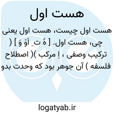 هست اول. [ هََ ت ِ اَوْ وَ ] ( ترکیب وصفی، اِ مرکب )( اصطلاح فلسفه ) آن جوهر بود که وحدت بدو متحد شد، و آن عقل کلی است که او را فیلسوف «عقل فعال » خواند، وآغاز هستی ها اوست. ( جامعالحکمتین ناصرخسرو ص 148 ).