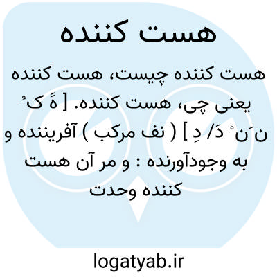 هست کننده. [ هََ ک ُ ن َن ْ دَ/ دِ ] ( نف مرکب ) آفریننده و به وجودآورنده: و مر آن هست کننده وحدت را و پدیدآرنده واحد را بدو مبدع گفتند... ( جامع الحکمتین ناصرخسرو ص 147 ).