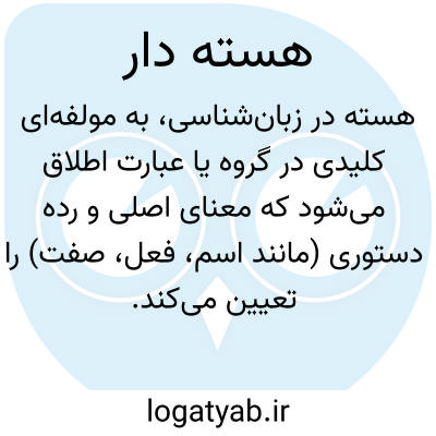 هسته در زبان‌شناسی، به مولفه‌ای کلیدی در گروه یا عبارت اطلاق می‌شود که معنای اصلی و رده دستوری (مانند اسم، فعل، صفت) را تعیین می‌کند. این هسته، نقش محوری در ساختار عبارت دارد و سایر عناصر در عبارت، معمولاً به عنوان وابستگان هسته عمل کرده و اطلاعات بیشتری را درباره آن فراهم می‌آورند. به عنوان مثال، در عبارت اسمی کتابِ جالبی که دیروز خریدم، واژه کتاب هسته گروه اسمی است، چرا که هسته معنایی و رده اسمی عبارت را مشخص می‌کند و سایر کلمات مانند جالبی و که دیروز خریدم نقش توصیفی یا وصفی برای این هسته ایفا می‌کنند.