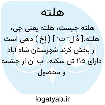 هلته.[ هََ ل َ ت َ ] ( اِخ ) دهی است از بخش کرند شهرستان شاه آباد دارای 115 تن سکنه. آب آن از چشمه و محصول عمده اش غلات دیم است. ( از فرهنگ جغرافیائی ایران ج 5 ).
