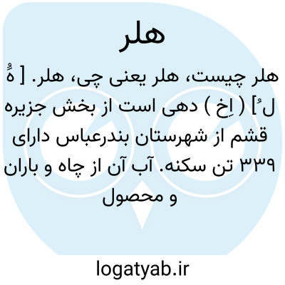 هلر. [ هَُ ل ُ] ( اِخ ) دهی است از بخش جزیره قشم از شهرستان بندرعباس دارای 339 تن سکنه. آب آن از چاه و باران و محصول عمده اش خرماست. ( از فرهنگ جغرافیائی ایران ج 8 ).