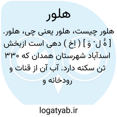 هلور. [ هَُ ل ْ وَ ] ( اِخ ) دهی است ازبخش اسدآباد شهرستان همدان که 330 تن سکنه دارد. آب آن از قنات و رودخانه و محصول عمده اش غله، انگور، حبوب و لبنیات است. ( از فرهنگ جغرافیائی ایران ج 5 ).