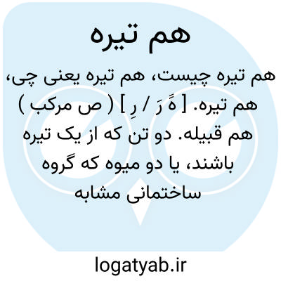 هم تیره. [ هََ رَ / رِ ] ( ص مرکب ) هم قبیله. دو تن که از یک تیره باشند، یا دو میوه که گروه ساختمانی مشابه دارند. ( یادداشتهای مؤلف ).