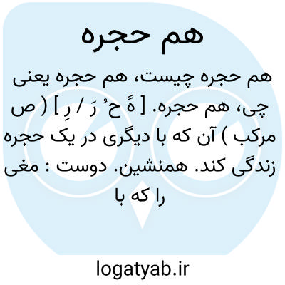 هم حجره. [ هََ ح ُ رَ / رِ ] ( ص مرکب ) آن که با دیگری در یک حجره زندگی کند. همنشین. دوست: