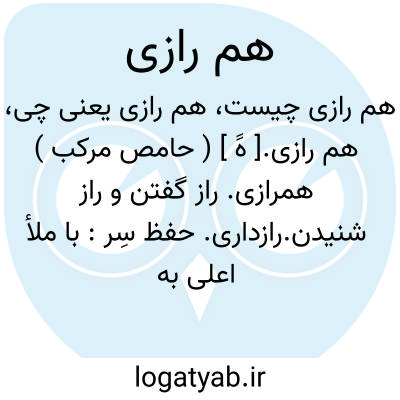 هم رازی.[ هََ ] ( حامص مرکب ) همرازی. راز گفتن و راز شنیدن.رازداری. حفظ سِر: با ملأ اعلی به انبازی هرچه تمامتر همرازی کردند. ( ترجمه تاریخ یمینی ).