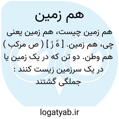 هم زمین. [ هََ زَ ] ( ص مرکب ) هم وطن. دو تن که در یک زمین یا در یک سرزمین زیست کنند: