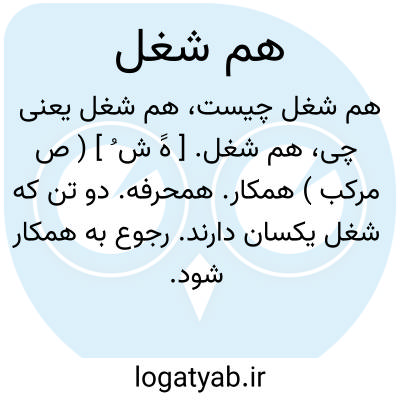 هم شغل. [ هََ ش ُ ] ( ص مرکب ) همکار. همحرفه. دو تن که شغل یکسان دارند. رجوع به همکار شود.